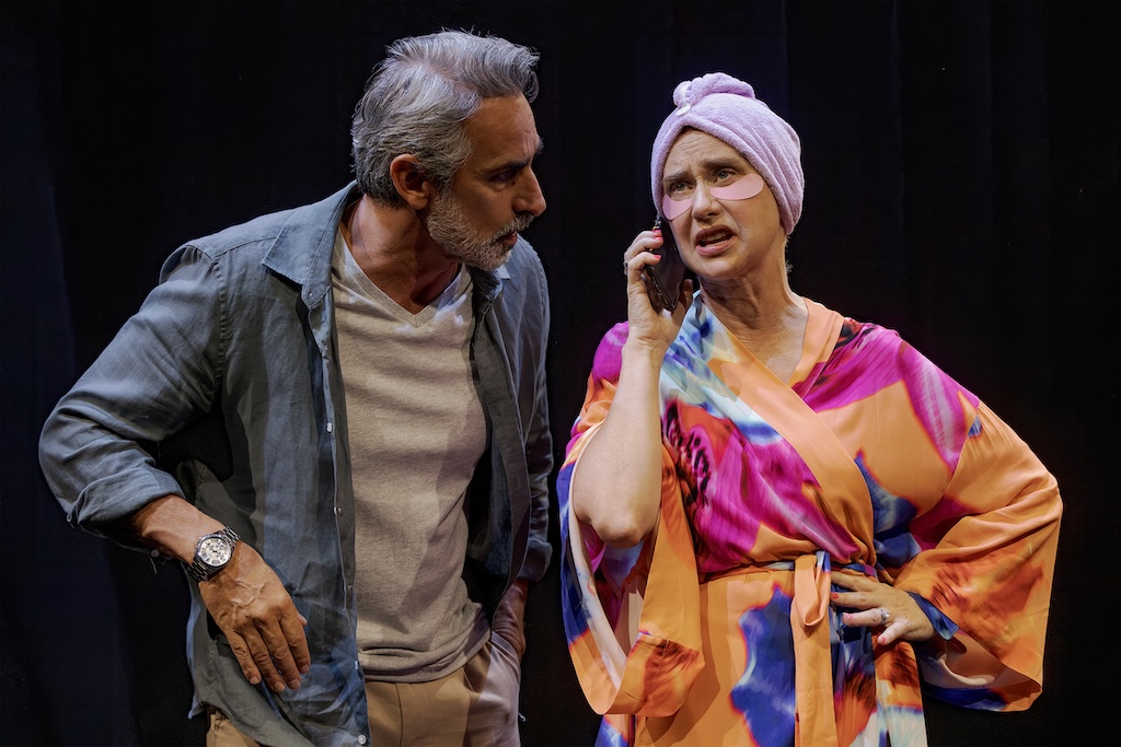 To make up the numbers, Katie, who has a chip on her shoulder because she wasn’t born into blue-ribbon Sydney, reels in some friends she had dumped – a once-successful film director Ben Gregory (Matt Minto) and his schoolteacher wife Laura (Jo Downing). They haven’t forgotten being dumped. So, blind Freddie could see (though Katie can’t) that the evening may not go exceedingly well.